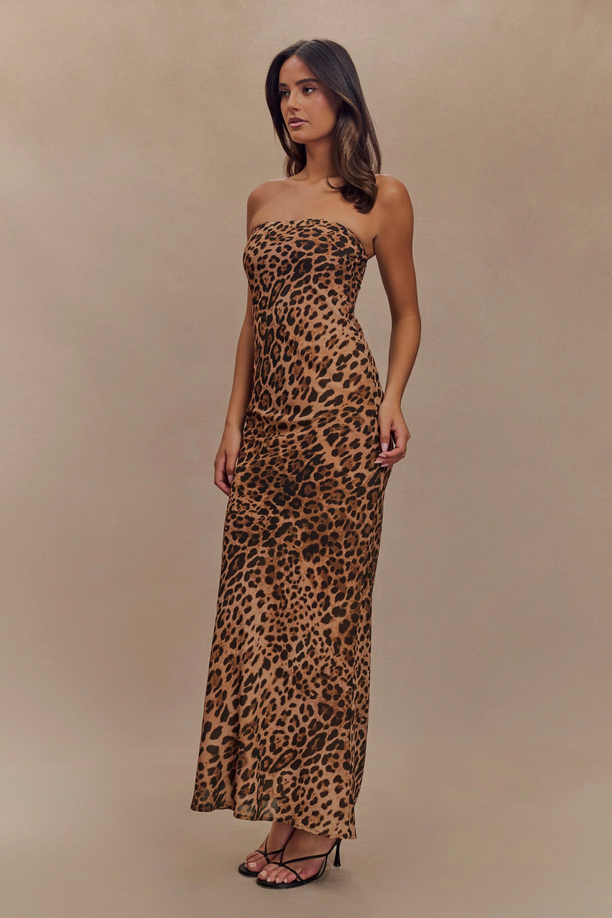 Breanna Strapless Chiffon Maxi Dress - Leopard Print